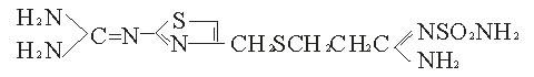 本品主要成份为法莫替丁,其化学名称为:[1-氨基-3-[ [ [ 2-[ ( 二氨基亚甲基 )氨基]-4- 噻唑基 ]- 甲基 ] 硫代 ]-亚丙基 ] 磺酰胺。